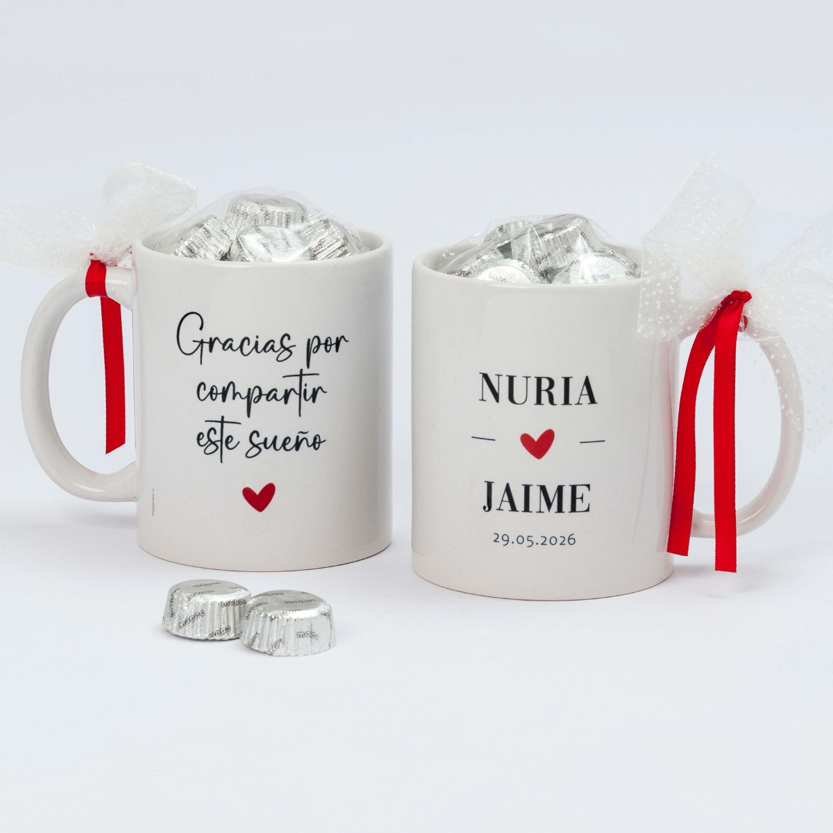 Taza cerámica Gracias por compartir 6 bombon. en caja regalo