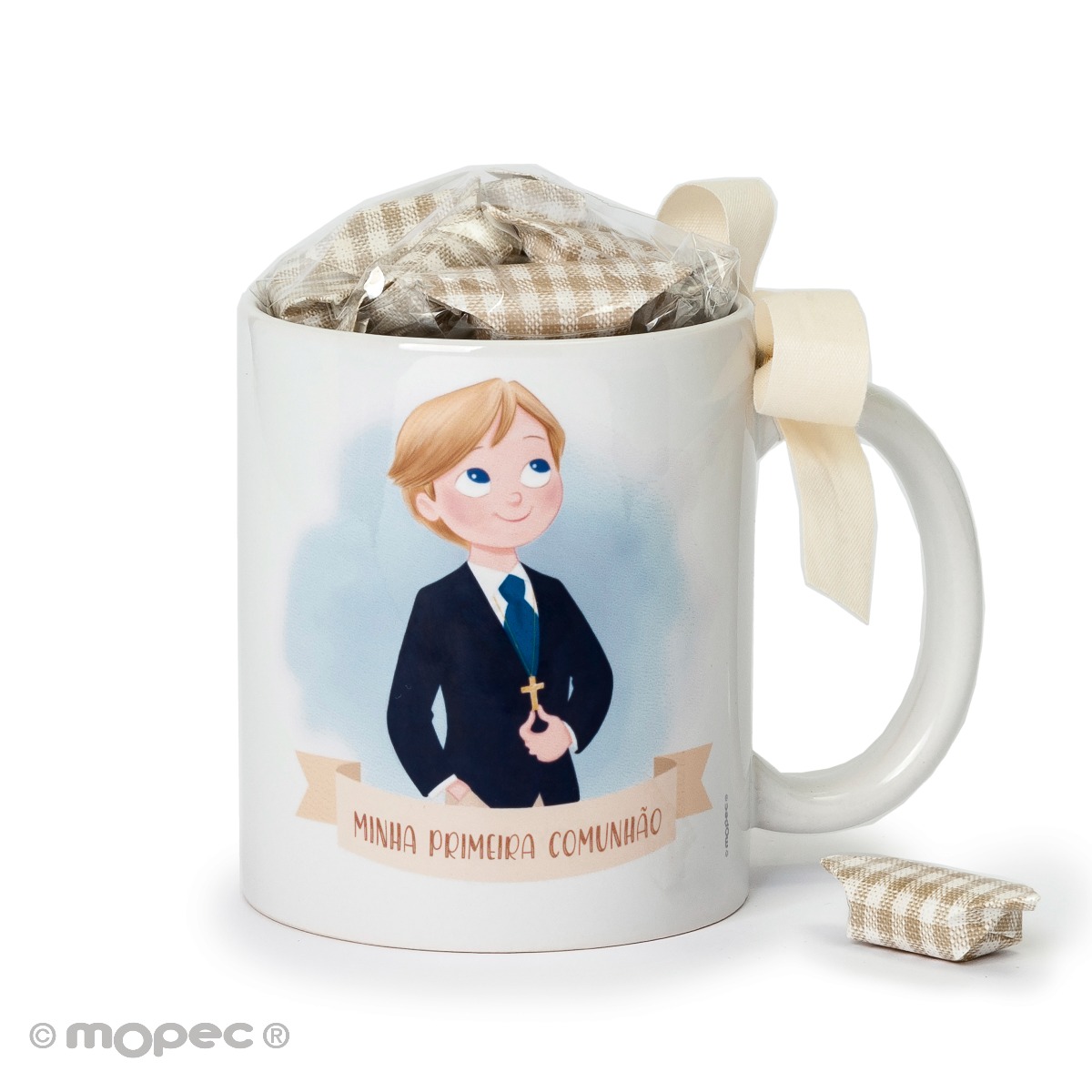 Taza Comunhão niño pantalón corto 7caramelos en caja regalo